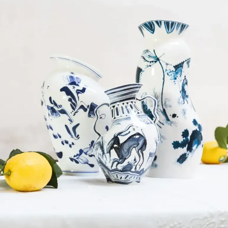De Seletti Classics on acid KING WEN vaas heeft een klassieke look met een gekke twist voor feestgangers en eclectici. Design Diesel Living. Gemaakt van porselein. Afmeting 18×13,5x39cm