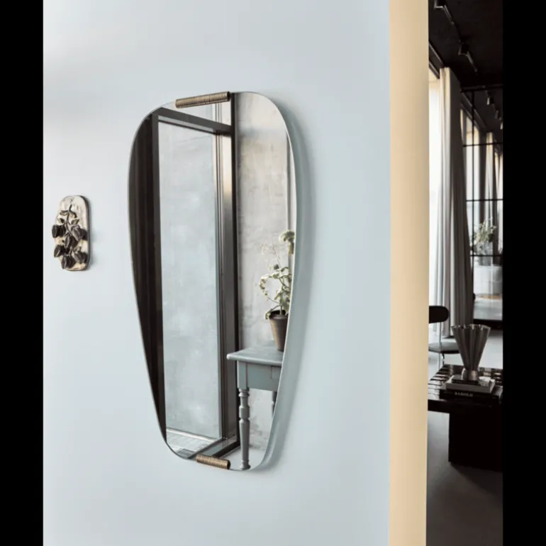 De ovalen House Doctor Clips spiegel is een echte blikvanger, met gouden clips aan de onder- en bovenkant voor een art deco-twist. De spiegel heeft een exclusieve en tijdloze uitstraling. Afmeting 100×54,5cm