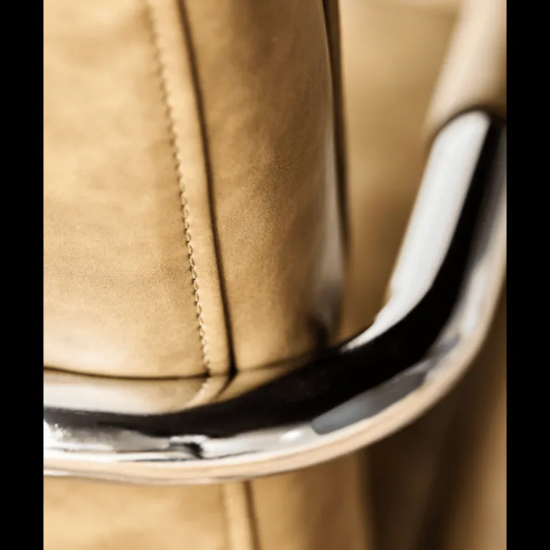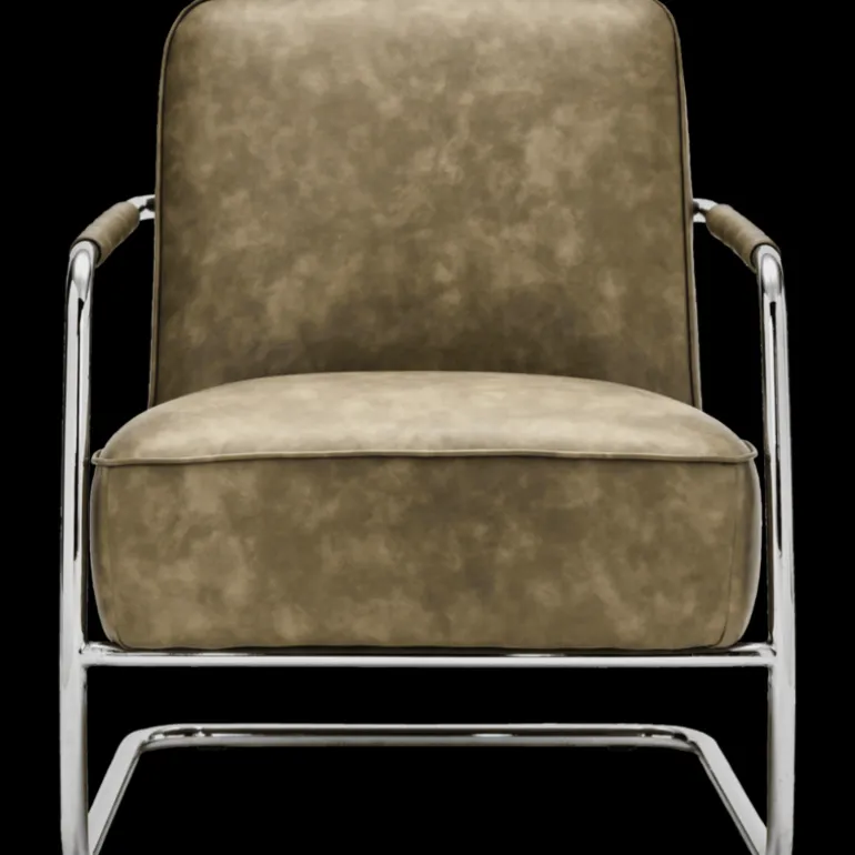 De House Doctor Comma loungestoel in een kakikleur brengt direct sfeer en comfort in je interieur. Het gebogen chromen frame geeft de stoel een moderne uitstraling, terwijl de luxe bekleding in lederlook zorgt voor ultiem zitgenot. Afmeting 77x67x82cm