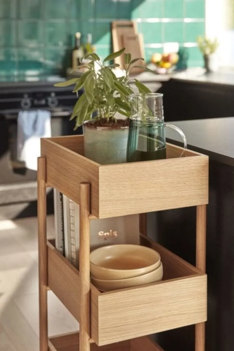 Deze mooie Hübsch console is gemaakt van eikenhout en heeft een modern en tijdloos design. Handig in de werkkamer of keuken maar ook heel mooi in de woonkamer. Afmeting 43x35xh90cm