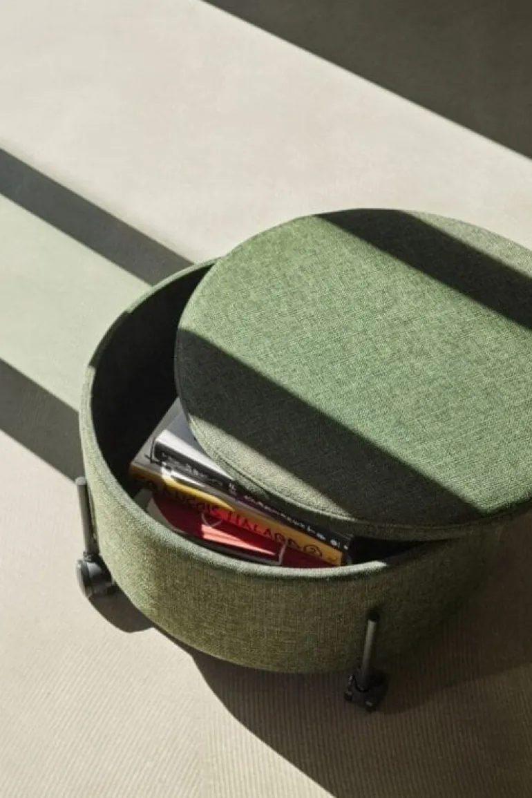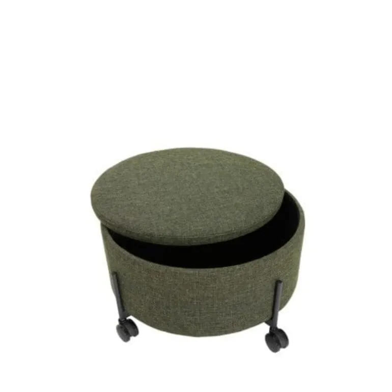 De Hubsch Contain poef is een multifunctioneel item! Gebruik om spullen op te bergen of als extra zitplek. De poef is door de wieltjes verrijdbaar. Beschikbaar in twee formaten. Afmeting Ø66x37cm