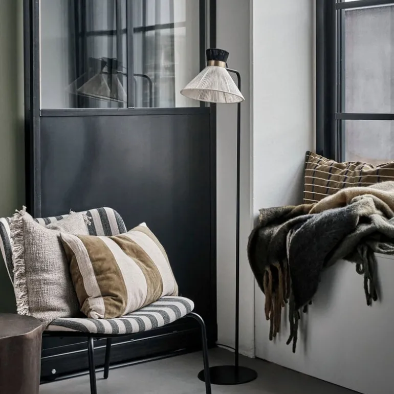 De House Doctor Cord vloerlamp heeft een artistieke en vintage look. Gemaakt van polyester en ijzer met een messing detail. Beschikbaar in verschillende uitvoeringen. Afmeting Ø25x132cm