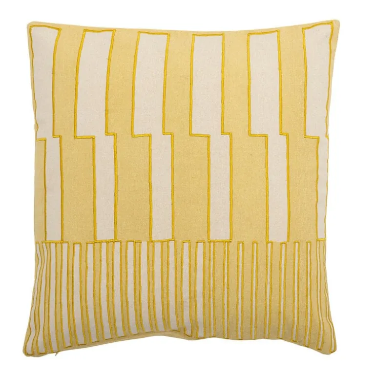 Het Bloomingville Cowes kussen is een kussen met grafisch patroon dat met zijn gele patchwork-ontwerp een unieke en stijlvolle touch aan elk interieur toevoegt. Afmeting 40x40cm