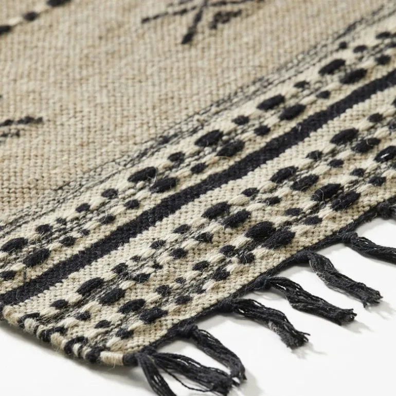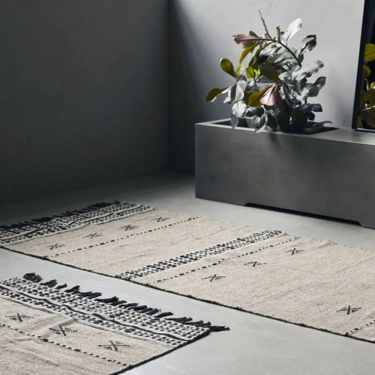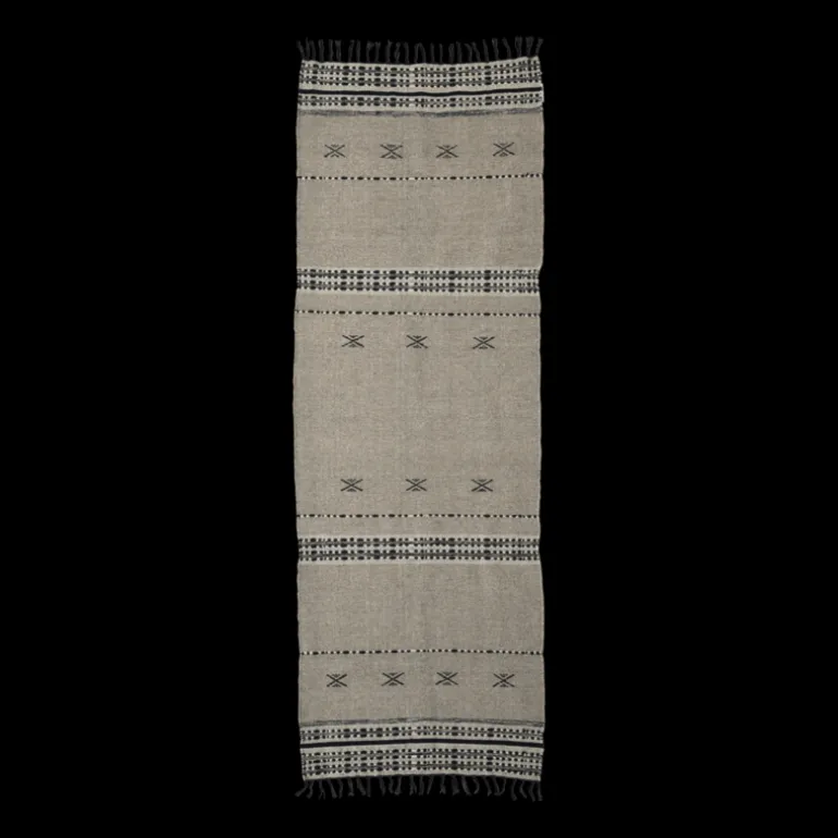 Prachtig House Doctor Cros vloerkleed. Dit zand kleurige vloerkleed is gemaakt van katoen en wol en heeft een afmeting van 300x90cm. Voorzien van een mooi patroon en aan beide zijden franjes.