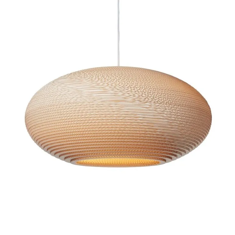 Prachtige lamp van Graypants. De Graypants Scraplights zijn handgemaakt van karton. Beschikbaar in verschillende uitvoeringen, afmetingen en kleuren. De Graypants Disc 24 hanglamp heeft een afmeting van Ø61x26cm.