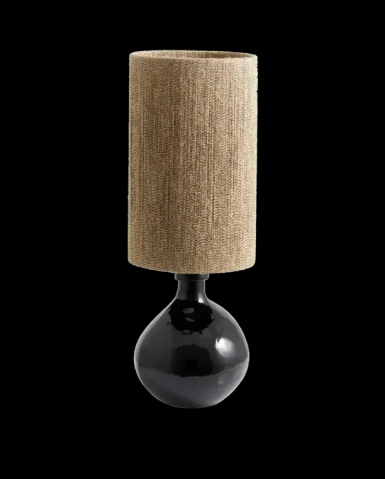 Prachtige tafellamp van Nordal. De Nordal Dissa tafellamp heeft een lampenkap gemaakt van jutte en de voet is van glas in de kleur zwart. Doordat de lamp handgemaakt is kunnen er verschillen zijn per item. De lamp heeft een afmeting van ø17x47cm.