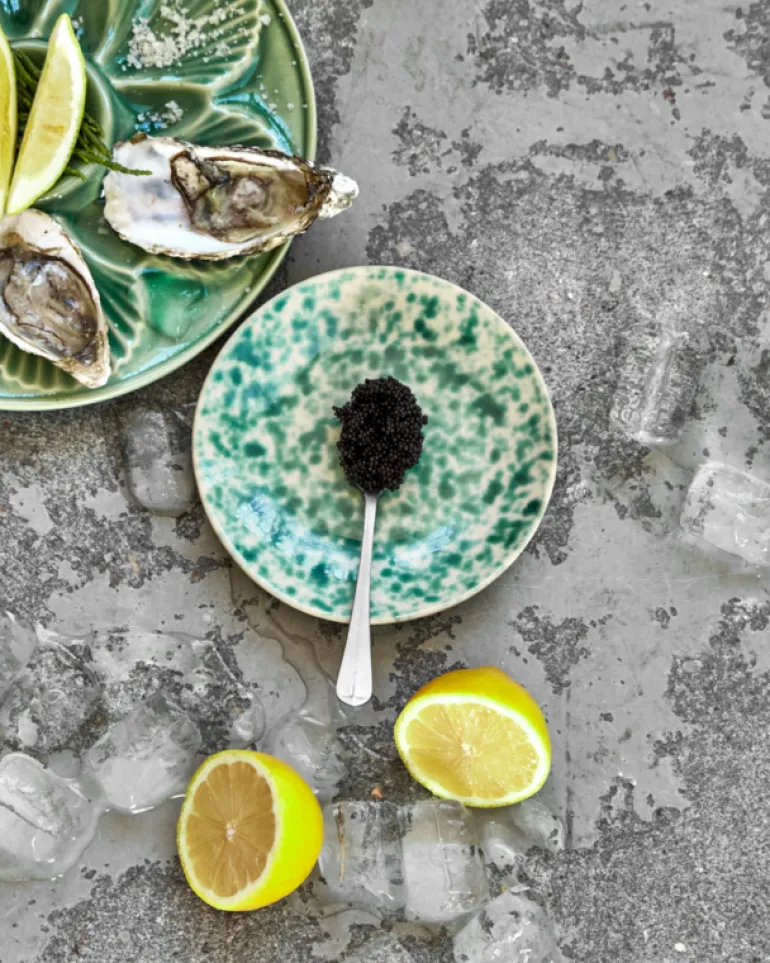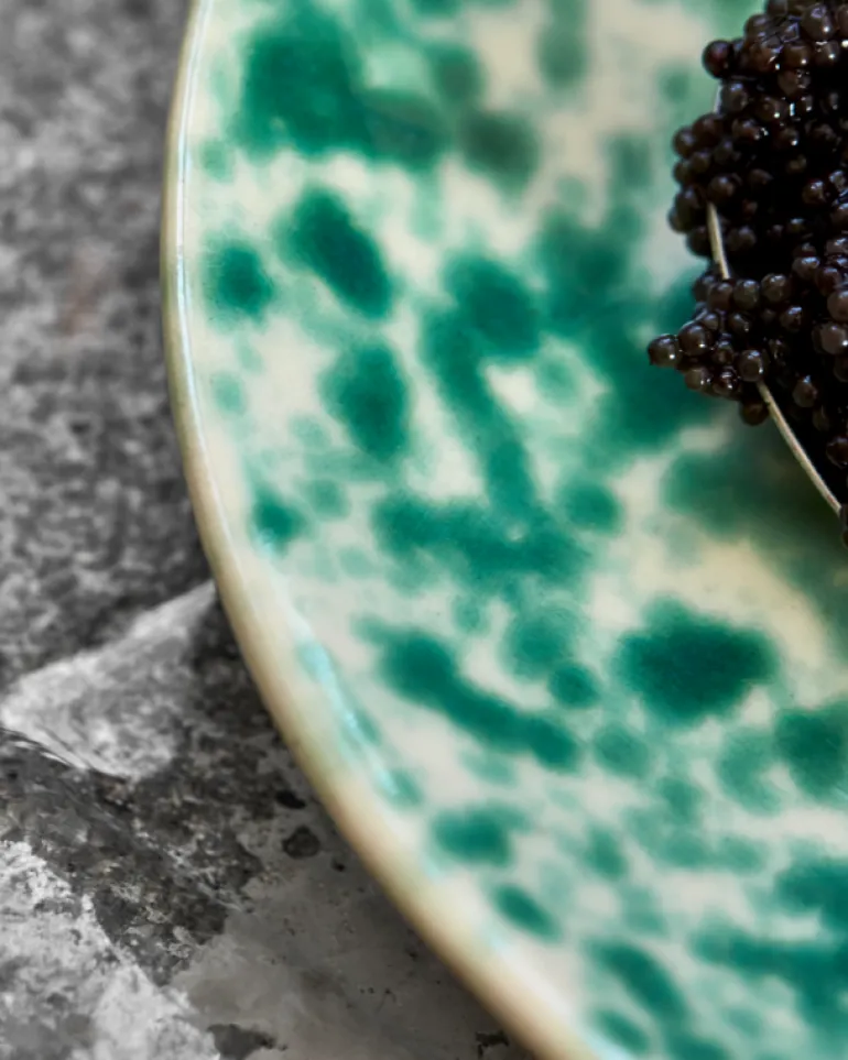 De House Doctor Diva dessertborden worden geleverd in een set van 8 stuks. Gemaakt van duurzaam aardewerk, met een handgeschilderd groen spatontwerp. Afmeting Ø16×2,5cm