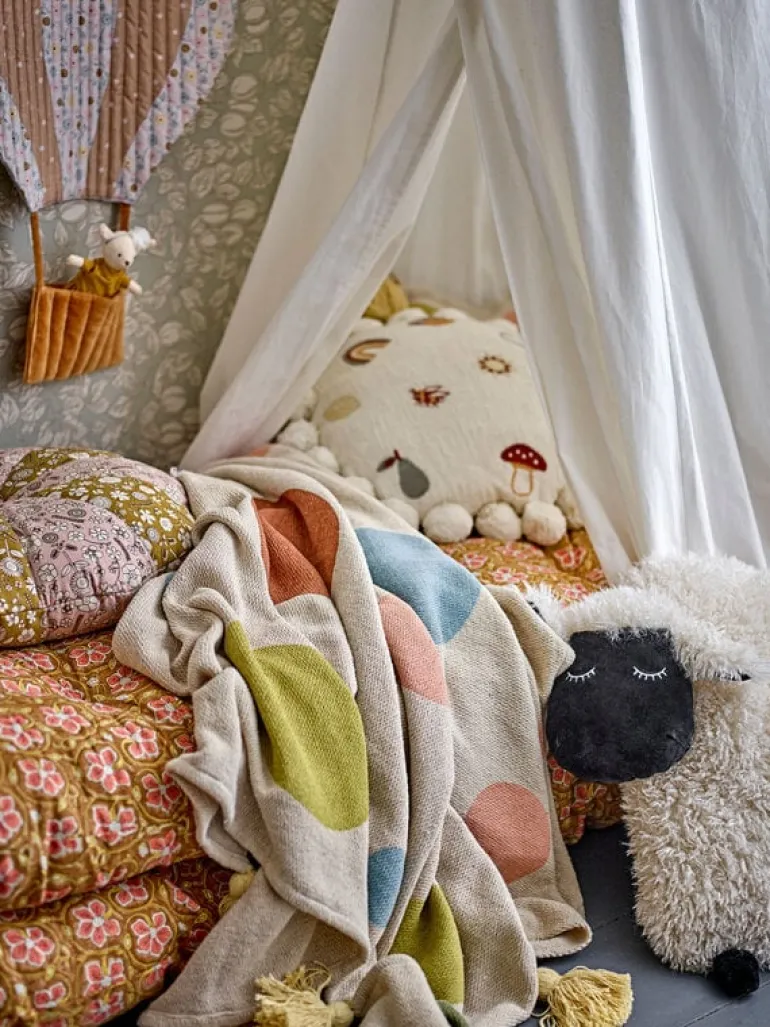 Maak kennis met Dolly het schaap, dat een zachte en gezellige touch toevoegt aan elke kinderkamer. Het Bloomingville Mini Dolly kussen is superzacht en comfortabel om op te liggen, perfect om mee te knuffelen. Afmeting 56x13x46cm