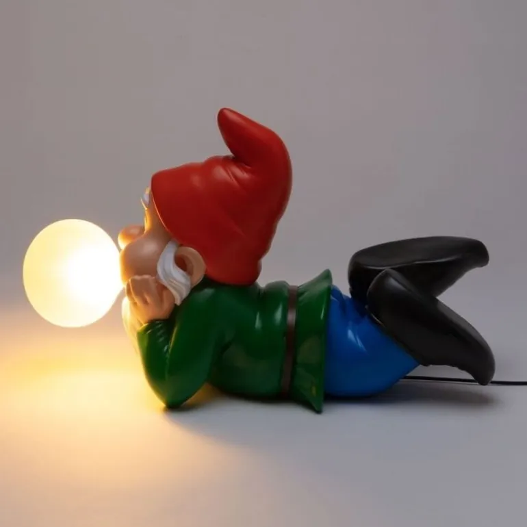 Grappige lamp van het interieurmerk Seletti. De Seletti Dreaming gummy lamp is een lamp in de vorm van een dwerg. Beschikbaar in verschillende uitvoeringen. Gemaakt van hars en een afmeting van 22x42cm, hoogte 26cm.