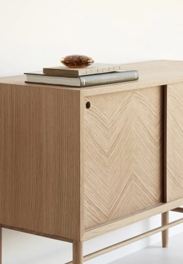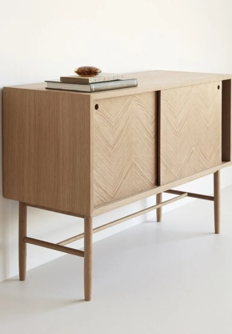 Dit mooie Hübsch dressoir is gemaakt van eikenhout en heeft twee schuifdeuren om eenvoudig spullen in op te bergen. Door het naturel hout heeft de kast een minimalistische uitstraling. Afmeting 100x40xh70cm