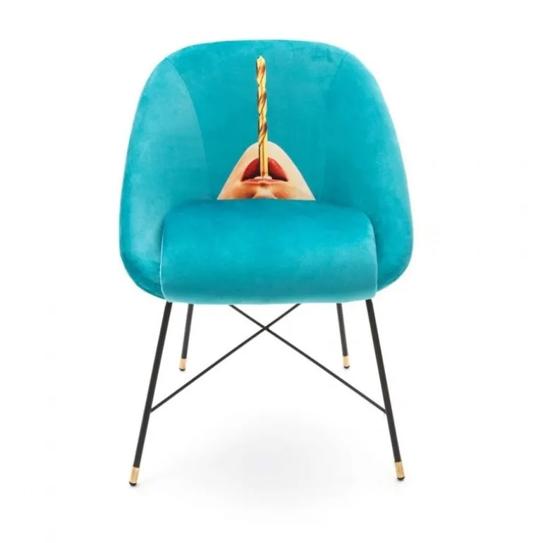 De Seletti Drill padded stoel is een comfortabele stoel. De padded stoelen zijn beschikbaar in verschillende prints, wat heel leuk is om te mixen en matchen. Afmeting 60x50cm, hoogte 72cm.