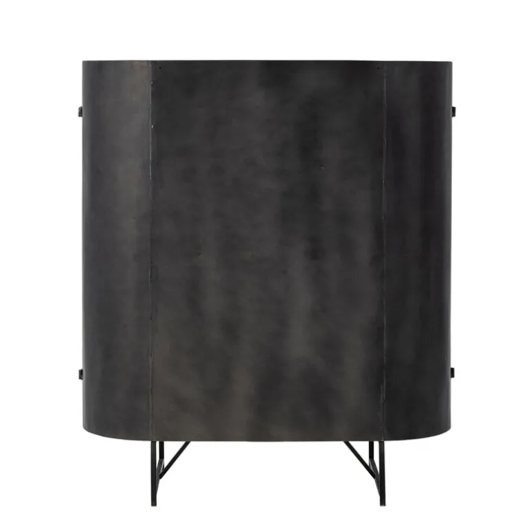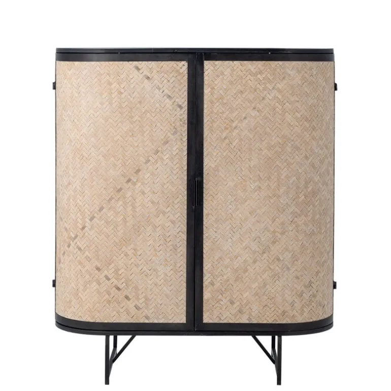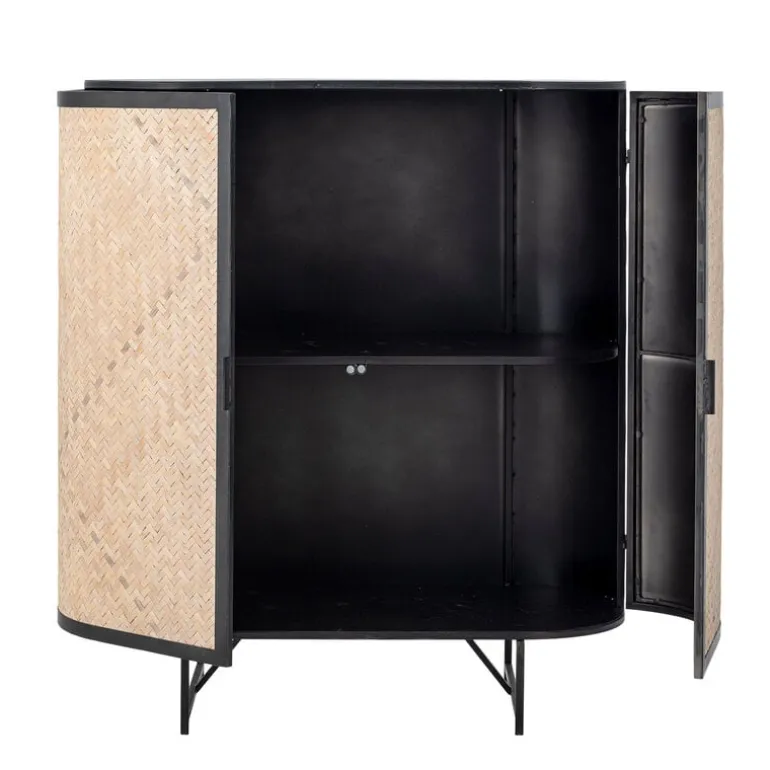 De Bloomingville Ember kast heeft een gebogen frame van zwart gelakt metaal, dat prachtig contrasteert met de met riet beklede deuren. Afmeting 92x105x36,5cm