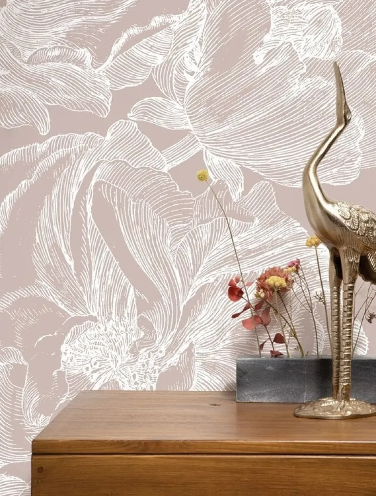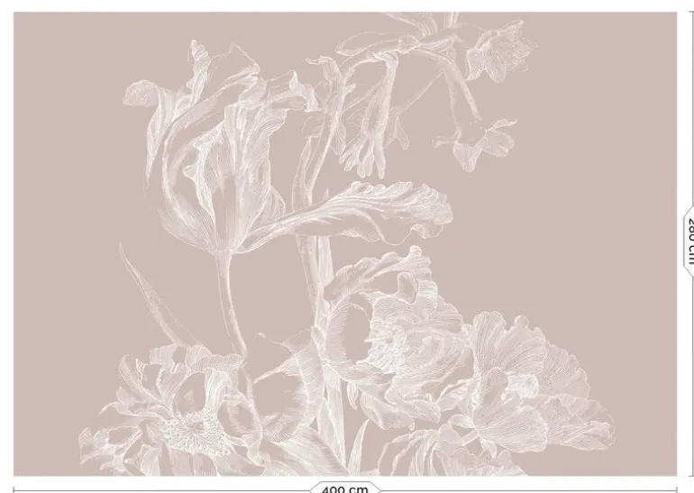Tijdloos bloemen behang van KEK Amsterdam. Het KEK Amsterdam Engraved bloemen behang nude heeft een afmeting van 400x280cm (8 banen). Beschikbaar in verschillende afmetingen en kleuren.
