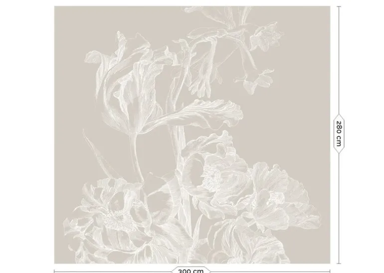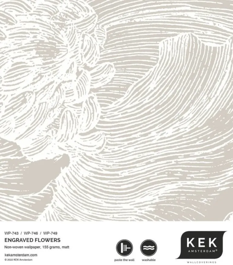 Tijdloos bloemen behang van KEK Amsterdam. Het KEK Amsterdam Engraved bloemen behang grijs heeft een afmeting van 300x280cm (6 banen). Beschikbaar in verschillende afmetingen en kleuren.