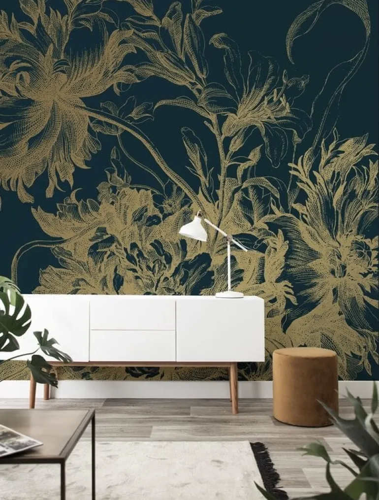 Prachtig goud behang met een mooie zijdeglans uitstraling van KEK Amsterdam. Het KEK Amsterdam Engraved flowers goud behang heeft een afmeting van 300x280cm (6 banen). Beschikbaar in verschillende afmetingen.