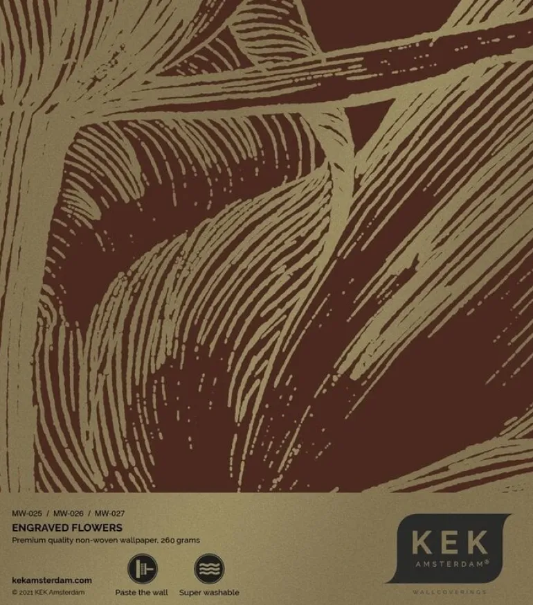 Prachtig goud behang met een mooie zijdeglans uitstraling van KEK Amsterdam. Het KEK Amsterdam Engraved flowers goud behang heeft een afmeting van 300x280cm (6 banen). Beschikbaar in verschillende afmetingen.