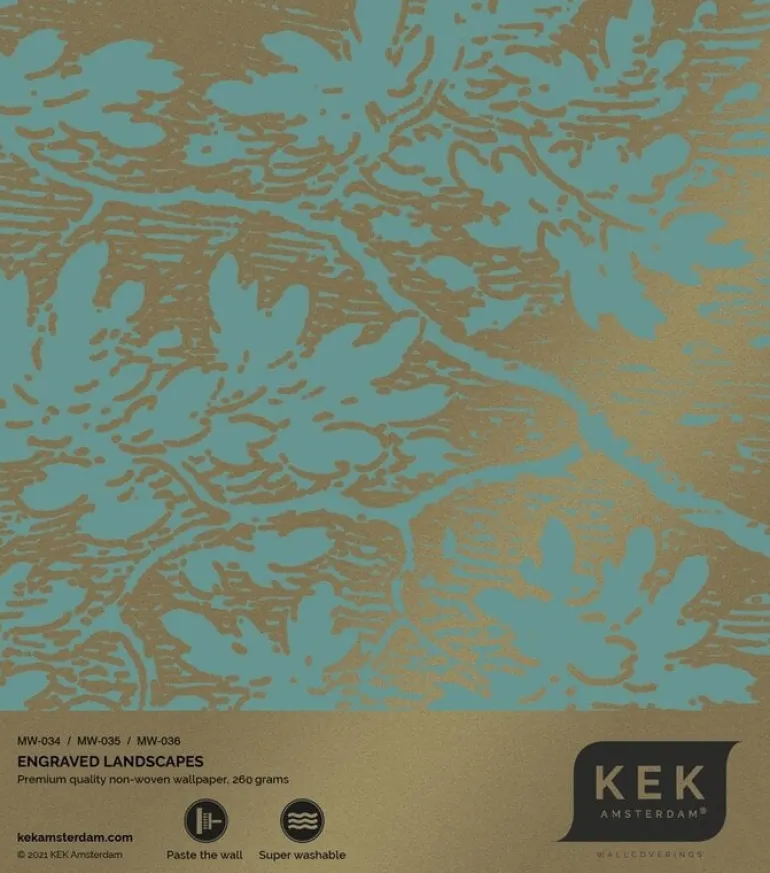 Prachtig goud behang met een mooie zijdeglans uitstraling van KEK Amsterdam. Het KEK Amsterdam Engraved landscapes goud behang heeft een afmeting van 400x280cm (8 banen). Beschikbaar in verschillende afmetingen en kleuren.