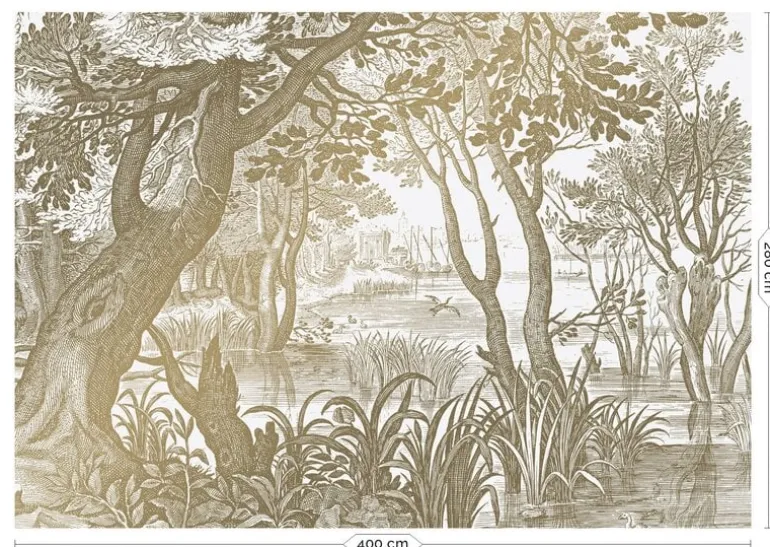 Prachtig goud behang met een mooie zijdeglans uitstraling van KEK Amsterdam. Het KEK Amsterdam Engraved landscapes goud behang heeft een afmeting van 400x280cm (8 banen). Beschikbaar in verschillende afmetingen en kleuren.