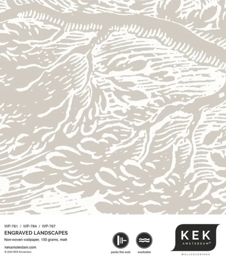 Mooi landschappen behang van KEK Amsterdam. Het KEK Amsterdam Engraved landschappen behang grijs is zeer geschikt om sfeer in je interieur te brengen . Afmeting behang 400x280cm (8 banen). Beschikbaar in verschillende afmetingen en kleuren.