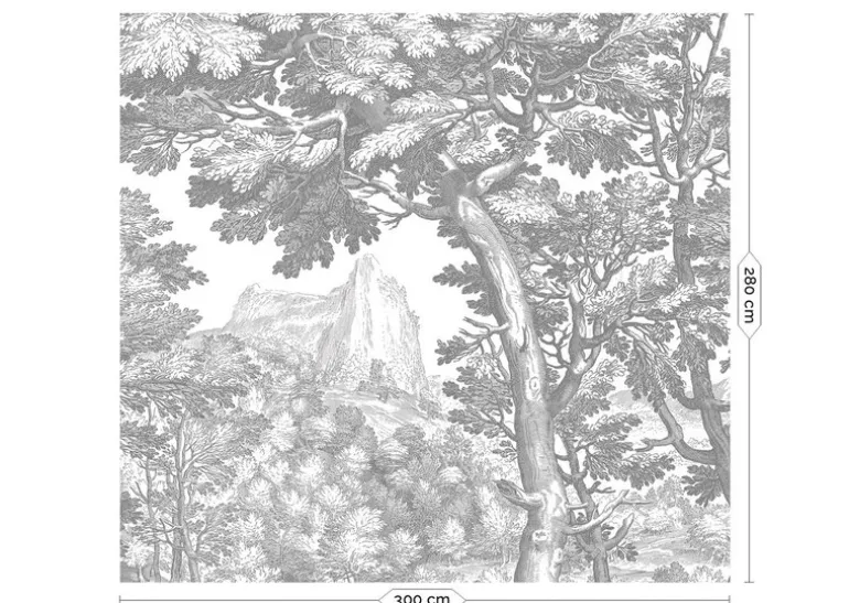 Mooi landschappen behang van KEK Amsterdam. Het KEK Amsterdam Engraved landschappen behang grijs is zeer geschikt om sfeer in je interieur te brengen. Afmeting behang 300x280cm (6 banen). Beschikbaar in verschillende afmetingen en kleuren.