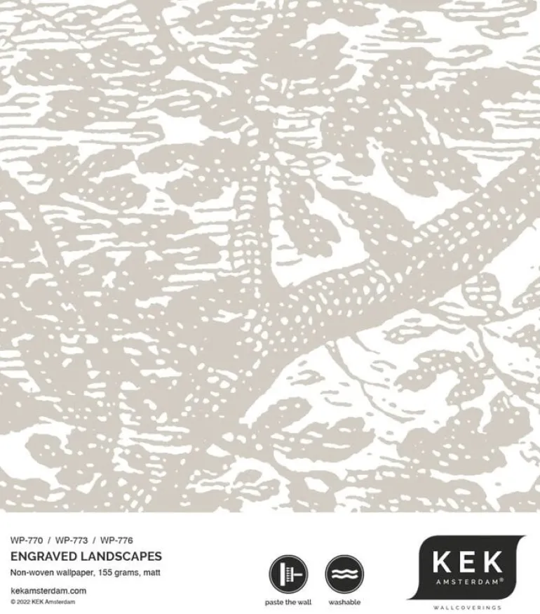 Mooi landschappen behang van KEK Amsterdam. Het KEK Amsterdam Engraved landschappen behang grijs is zeer geschikt om sfeer in je interieur te brengen. Afmeting behang 300x280cm (6 banen). Beschikbaar in verschillende afmetingen en kleuren.