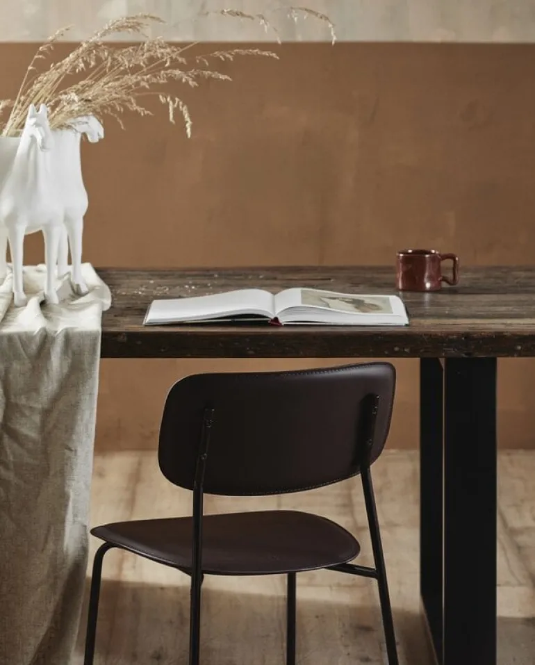 De Esa stoelen van Nordal zijn beschikbaar in meerdere kleuren. De Nordal Esa stoel heeft een pu zitting en rugleuning en een ijzeren onderstel met poedercoating. Afmeting 79cm hoog, 45cm breed en 50cm diep.