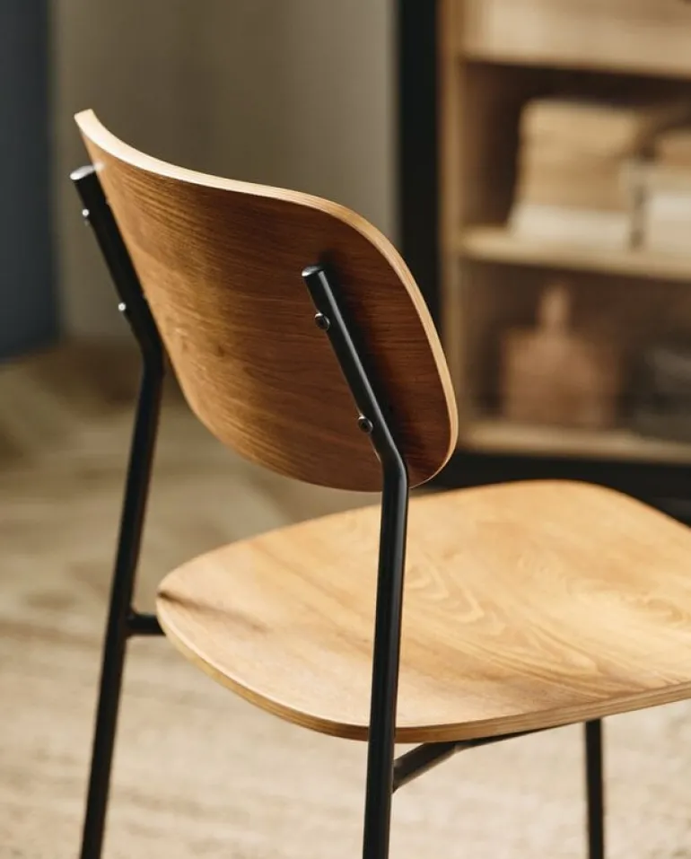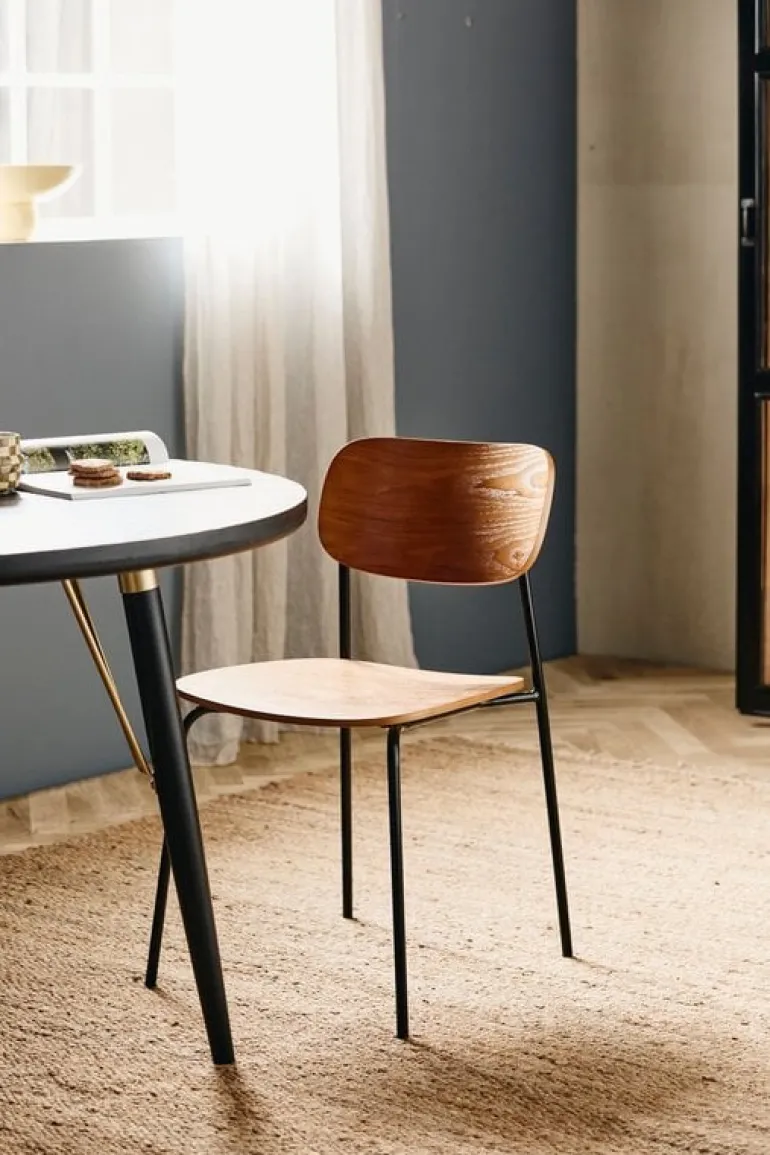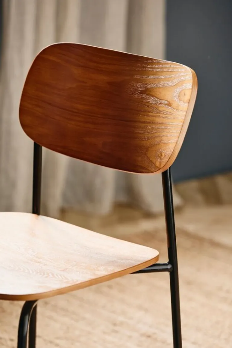 De Esa stoelen van Nordal zijn beschikbaar in meerdere kleuren. De Nordal Esa stoel heeft een houten zitting en rugleuning en een ijzeren onderstel met poedercoating. Afmeting 76,5cm hoog, 43cm breed en 50cm diep.