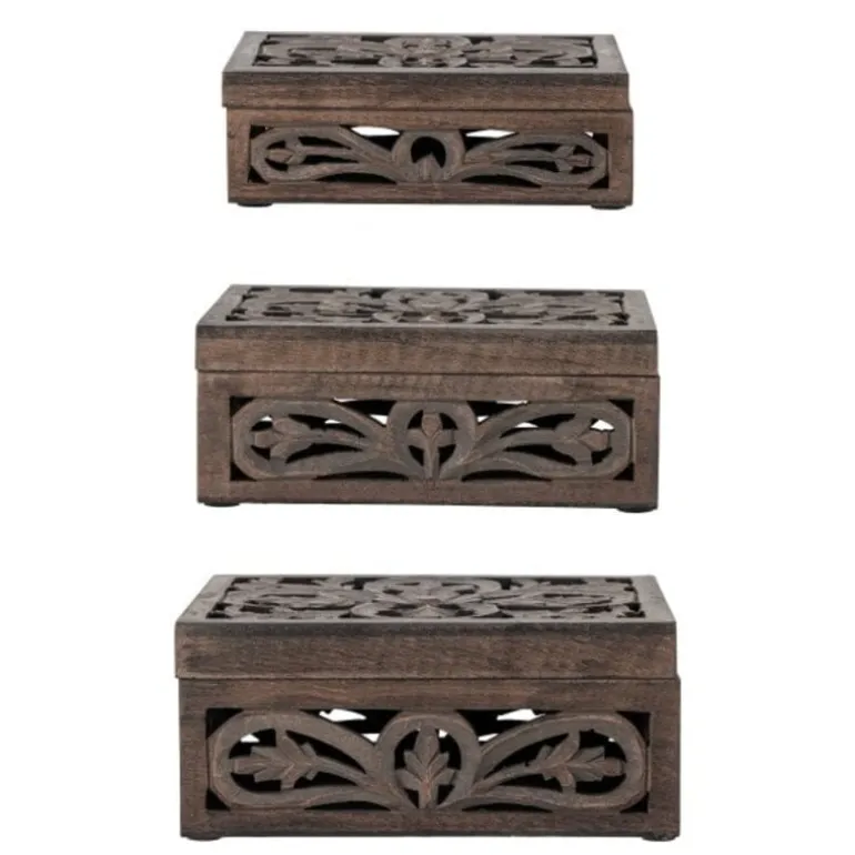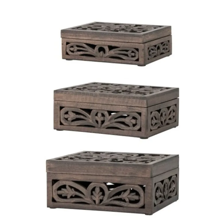 Opbergboxen gemaakt van mangohout en MDF uit de Bloomingville creative collectie. Handig om spulletjes in op te bergen. De Bloomingville Etta opbergboxen worden geleverd in een set van 3 stuks met verschillende afmetingen.
