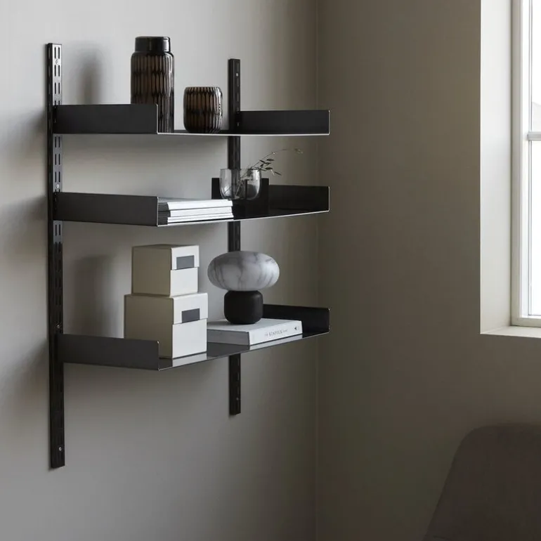Open wandrekken zijn populair! Prachtig minimalistisch planken systeem van het populaire House Doctor. Gemaakt van metaal met een zwarte coating. Ideaal om al je favoriete items te displayen. l: 100 cm, w: 90 cm, h: 30 cm