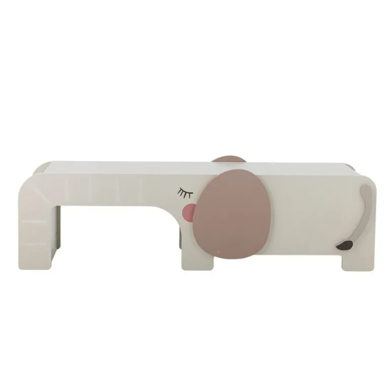 De Bloomingville Mini Ferdinand bank lijkt op een lief olifantje. De charmante vorm en open planken maken hem tot een gezellig en praktisch meubelstuk voor de kinderkamer, met extra opbergruimte verborgen onder de zitting. Afmeting 110x32x36cm