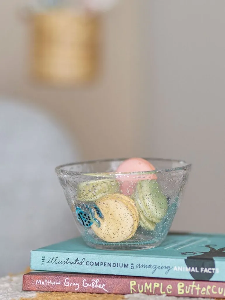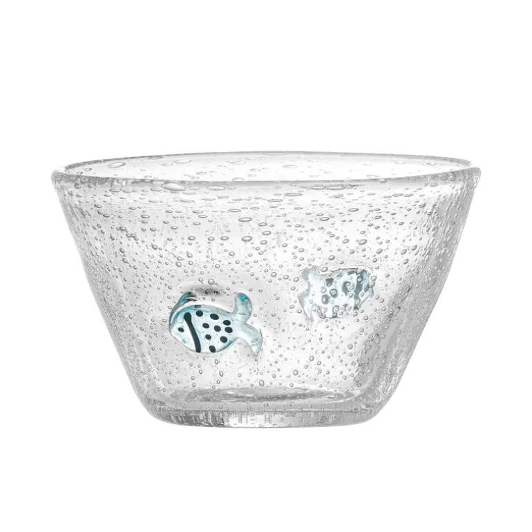 De Bloomingville Mini Finney schaaltjes zijn gemaakt van mondgeblazen glas en versierd met kleine blauwe visjes. Wordt geleverd in een set van 6 stuks. Afmeting 10,5x7cm