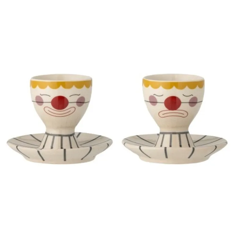 Set van 8 grappige eierdoppen. De Bloomingville Mini Fizbo eierdoppen hebben een blij gezicht aan de ene zijde en een verdrietig gezicht aan de andere zijde. Gemaakt van aardewerk en een afmeting van Ø7,5x6cm.