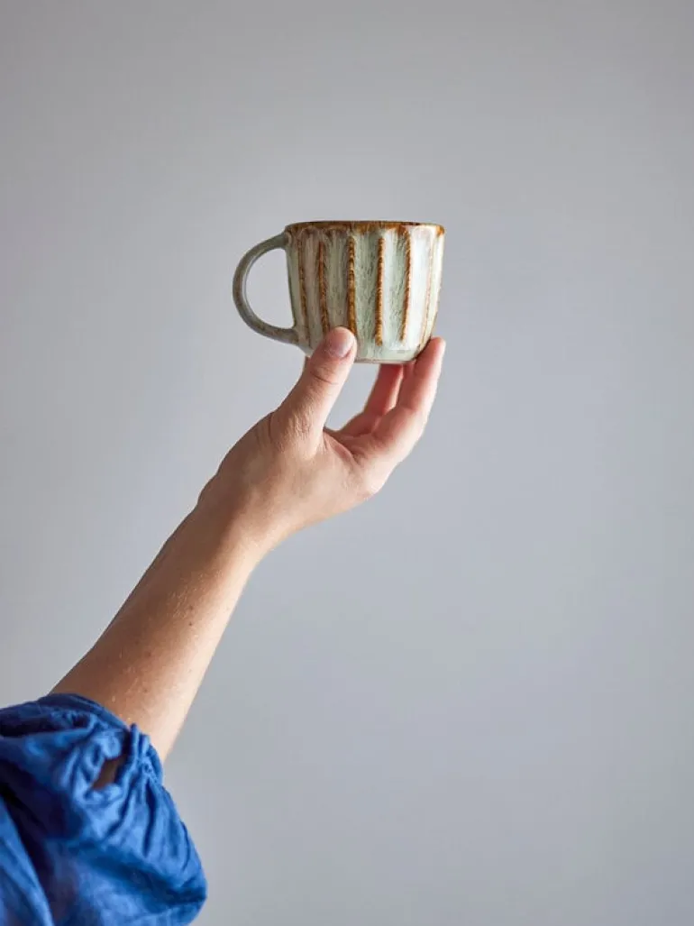 De Bloomingville Fleur mokken hebben een delicate kleurencompositie van blauwe, groene en bruine tinten die een natuurlijke look creëren. Wordt geleverd in een set van 6 stuks. Afmeting Ø8x7cm