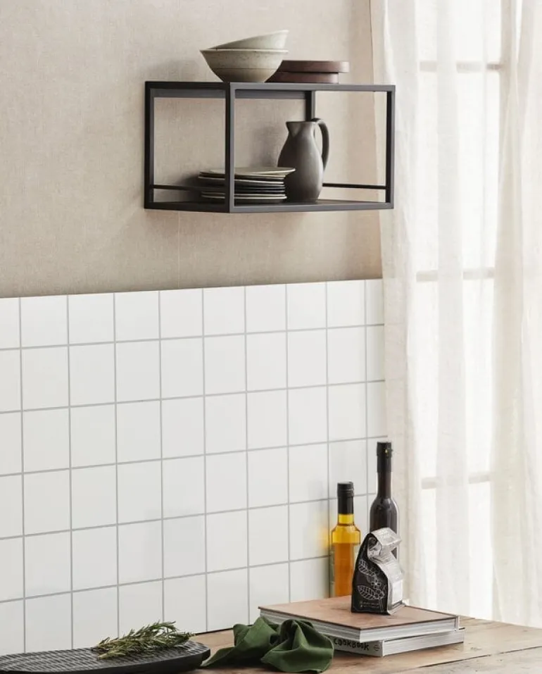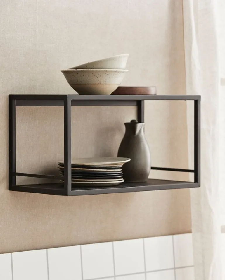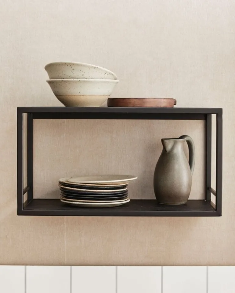 Tijdloze wandplank uit de nieuwe AW22 collectie van Nordal. De Nordal Flint wandplank is gemaakt van hout en ijzer in de kleur zwart. Afmeting 40x20x21cm