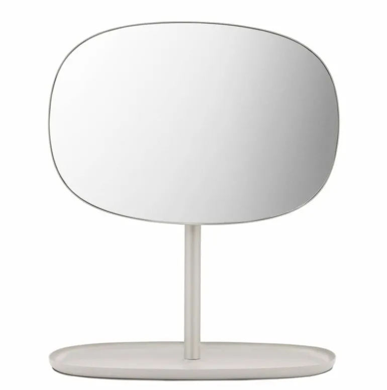 Handige Normann Copenhagen Flip spiegel. De Flip spiegel is ideaal te gebruiken omdat deze 360 graden draaibaar is. Het onderstel dient als schaal voor bijvoorbeeld sieraden of make-up. Past mooi in de minimalistische Scandinavische trend.