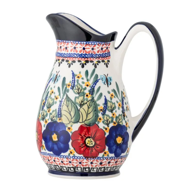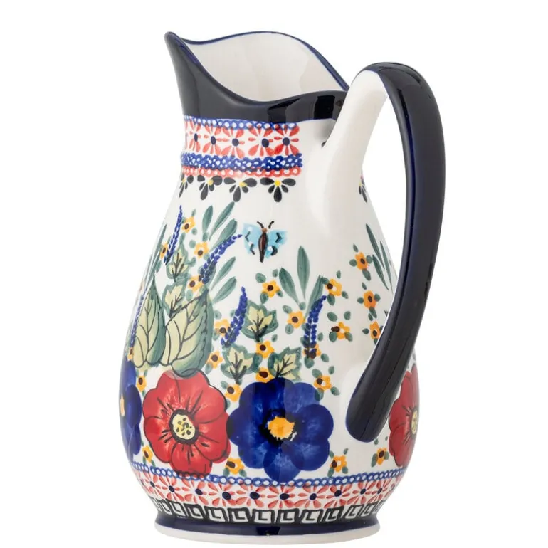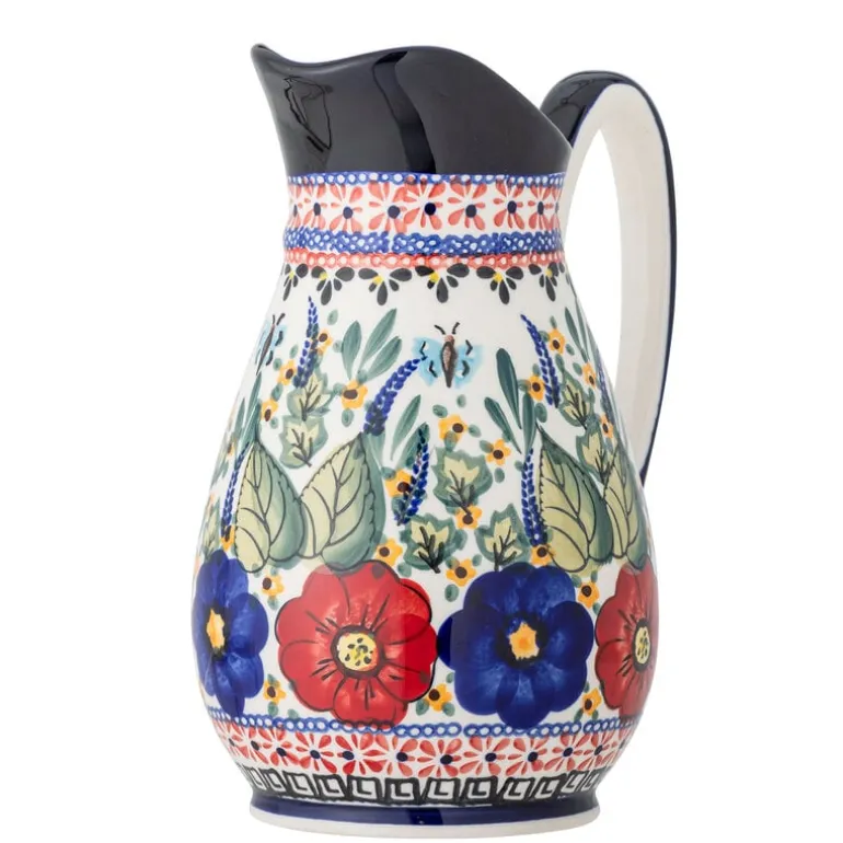 De Bloomingville Florist kan is gemaakt van aardewerk en prachtig versierd met een kleurrijk en levendig bloemmotief in blauwe, rode, gele en groene kleuren. te gebruiken als vaas, decoratie object of waterkan. Afmeting 17,5x23x14cm
