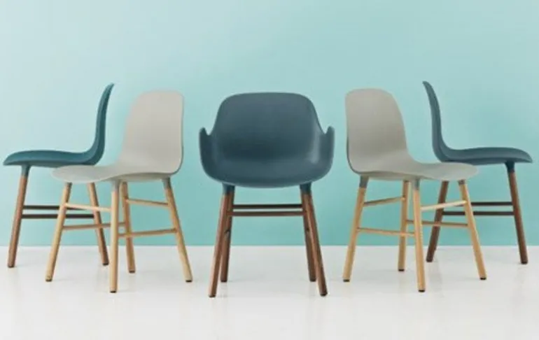 De Form Armchair van designer Simon Legald behoort tot de prachtige eigentijdse collectie van het Deense designmerk Normann Copenhagen. De Form Armchair heeft een stevig walnoten frame met een blauwe kunststof zitting.