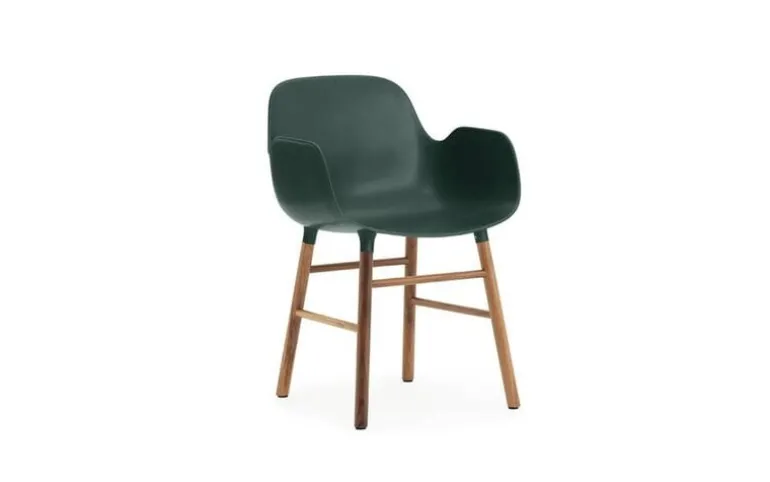 De Form Armchair van designer Simon Legald behoort tot de prachtige eigentijdse collectie van het Deense designmerk Normann Copenhagen. De Form Armchair heeft een stevig walnoten frame met een groene kunststof zitting.