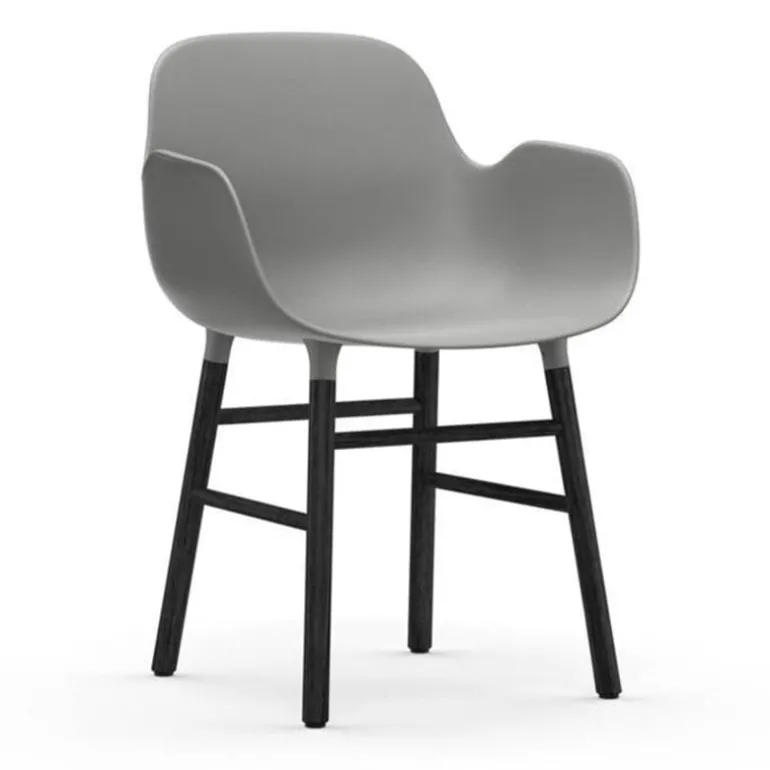 De Normann Copenhagen Form Armchair van designer Simon Legald behoort tot de prachtige eigentijdse collectie van het Deense designmerk Normann Copenhagen. De Form Armchair heeft een stevig zwart houten frame met een grijze kunststof zitting.