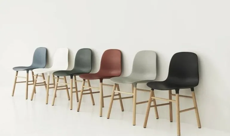 De Form Chair van designer Simon Legald behoort tot de prachtige eigentijdse collectie van het Deense designmerk Normann Copenhagen. De Form chair heeft een stevig eiken frame met een kunststof zitting en is leverbaar in diverse moderne kleuren.