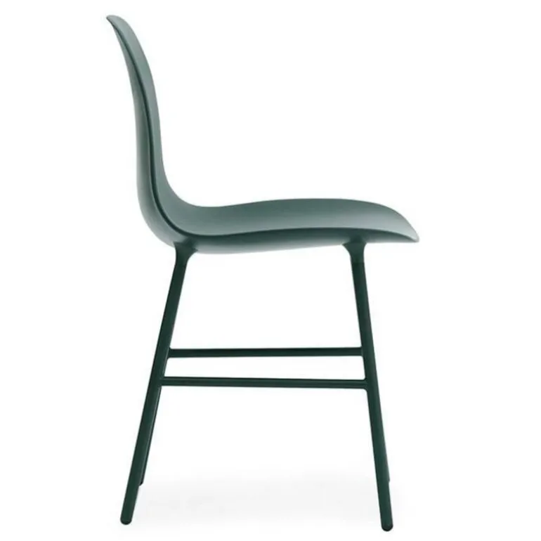 De Form Chair van designer Simon Legald behoort tot de prachtige eigentijdse collectie van het Deense designmerk Normann Copenhagen. De Form chair heeft een stalen frame met een groene kunststof zitting.