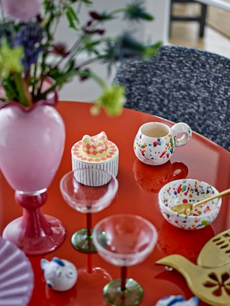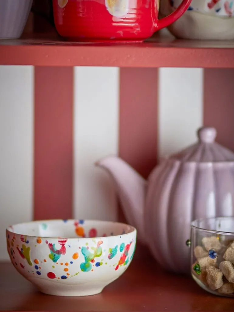 De Bloomingville Freckles schaaltjes zijn gemaakt van aardewerk en worden geleverd in een set van 4 stuks. De schaaltjes hebben een met de hand aangebracht stippenpatroon in felle kleuren. Afmeting Ø11,5x6cm