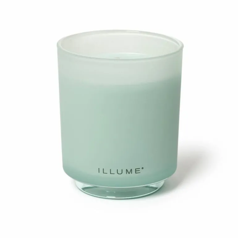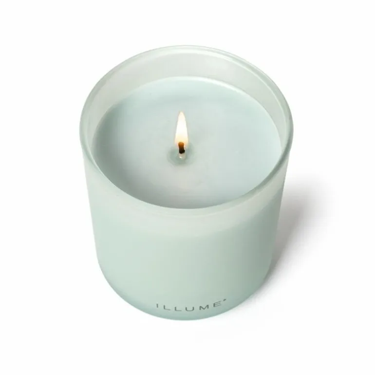 De Illume Fresh sea salt box kaars met de geur van zoute zee, met een hart van poëtische jasmijn en gekust door een zacht briesje. Vegan, dierproefvrij, plantaardig. Brandduur is tot 50 uur. Afmeting Ø9×10,7cm