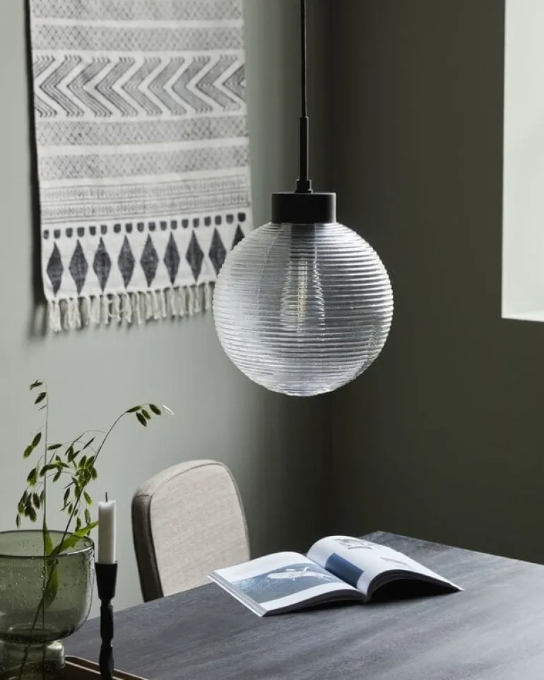 Mooie, minimalistische hanglamp van House Doctor. De House Doctor Gaia hanglamp is gemaakt van metaal en glas. Beschikbaar in twee formaten. De lamp heeft een afmeting van h: 39 cm, dia: 25 cm.