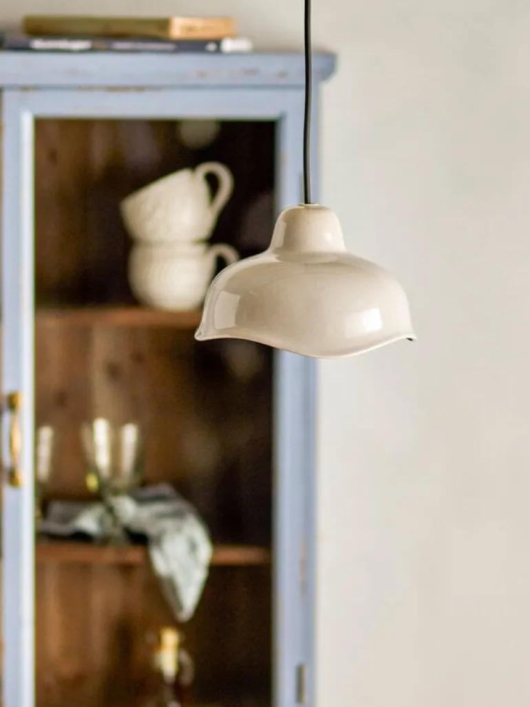 De Bloomingville Garner lampenkap is handgemaakt van aardewerk met een golvende rand en in een lichte tint. De lampenkap heeft de perfecte maat en vorm om boven de keukentafel te plaatsen. Afmeting Ø23x15cm