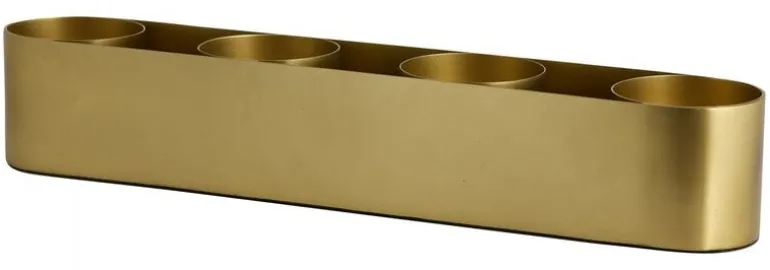 Mooie kandelaar van het Deense interieurmerk Nordal. De Nordal Gili kandelaar is gemaakt van ijzer met een gouden finish. Er kunnen vier kaarsen met een diameter van 70mm in geplaatst worden. Afmeting 42,5×7,5×7,5cm