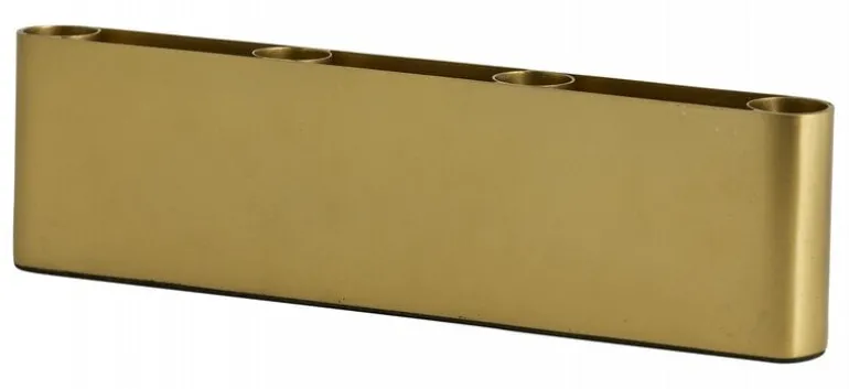 Mooie kandelaar van het Deense interieurmerk Nordal. De Nordal Gili kandelaar is gemaakt van ijzer met een gouden finish. Er kunnen vier kaarsen met een diameter van 22mm in geplaatst worden. Afmeting 27×2,5x7cm