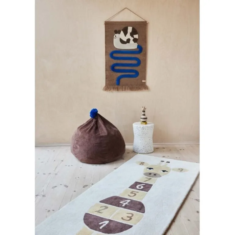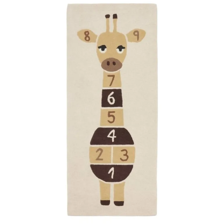 Prachtig vloerkleed van het merk OYOY. Het OYOY Giraf vloerkleed is gemaakt van 80% wol en 20% katoen. Het kleed heeft een print van een giraf met een hinkelbaan. Leuk voor in de kinderkamer! Het kleed heeft een afmeting van 180x75cm.
