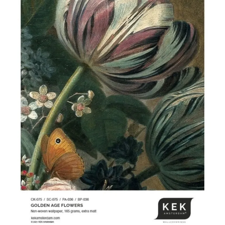 Prachtig hoogwaardig vliesbehang van KEK Amsterdam. De KEK Amsterdam Golden age flowers behangcirkel heeft geen coating waardoor het behang een super matte uitstraling heeft. Beschikbaar in verschillende afmetingen. Afmeting ø142,5cm (3 banen)