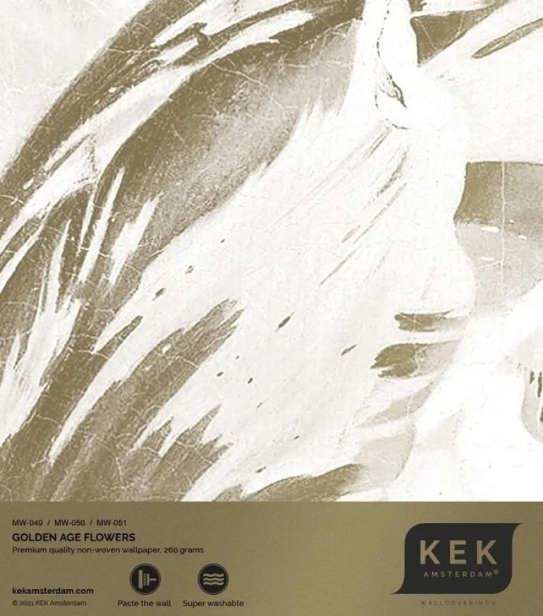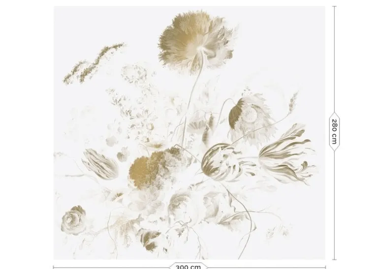 Prachtig goud behang met een mooie zijdeglans uitstraling van KEK Amsterdam. Het KEK Amsterdam Golden age flowers goud behang heeft een afmeting van 300x280cm (6 banen). Beschikbaar in verschillende afmetingen.